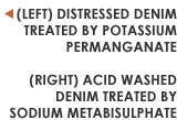 Sodium metabisulphite is another bleaching agent. Because potassium permanganate often produces a light brown color when applied to denim, sodium metabisulphite is used as a neutralizer to turn those areas closer to a shade of white. The result is the appearance of sun-bleaching or fading on the denim.